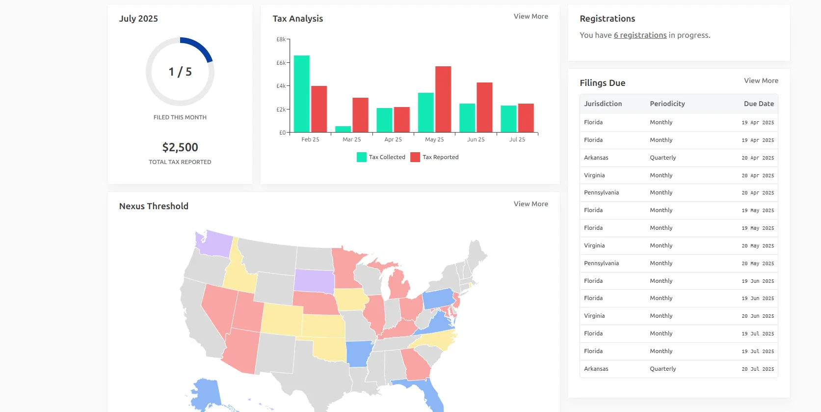 Yonda plugs into your existing tech-stack and files, and remits your sales tax, VAT & GST. Track your tax filings and download reports in one easy to use platform.